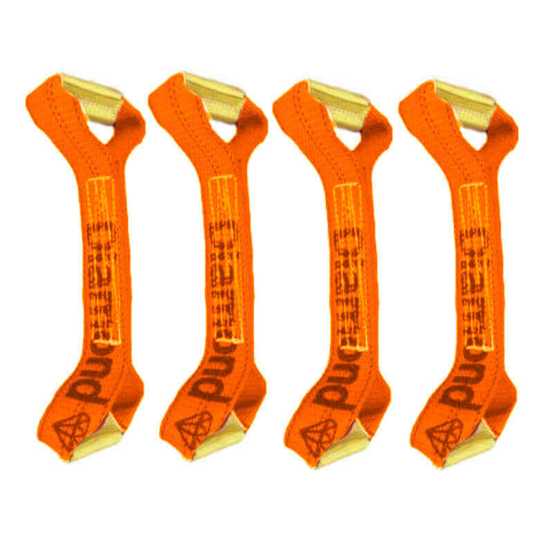 Orange Dog bone 4-pack.  Made with Diamond Weave webbing these reinforced loop end straps are made to be used with the towing 8-point tie down system.