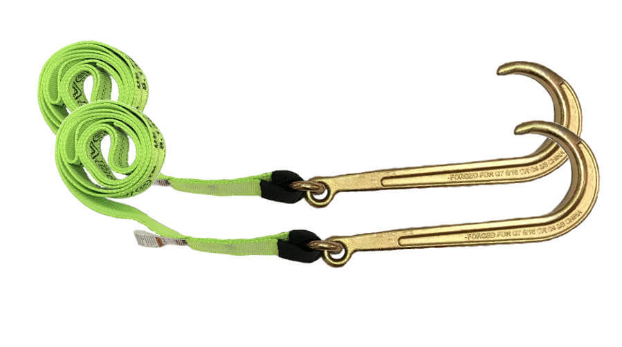15" J-Hook w/ 8' tie-down Strap 2-PACK High Visibility Green