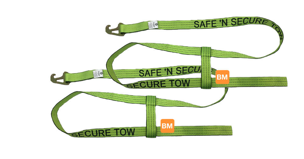 At Baremotion we supplies a variety of towing tie down straps. These wheel lift tie downs are commonly used with a tow dolly and a wheel lift. Lasso Straps (O-Ring Strap), Basket Straps, Under Reach Tie-Down, and more.