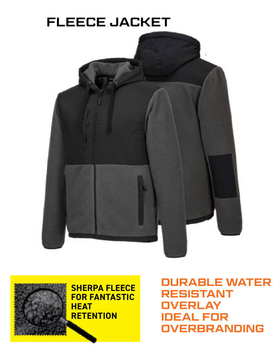 Work fleece jacket made from soft knitted fleece fabric to keep you comfortable all day long.  Portwest Jackets and workwear available at Baremotion