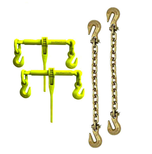 5/16" Grade 70 transport chain and binder kit includes high visibility ratchet load binders for added safety.